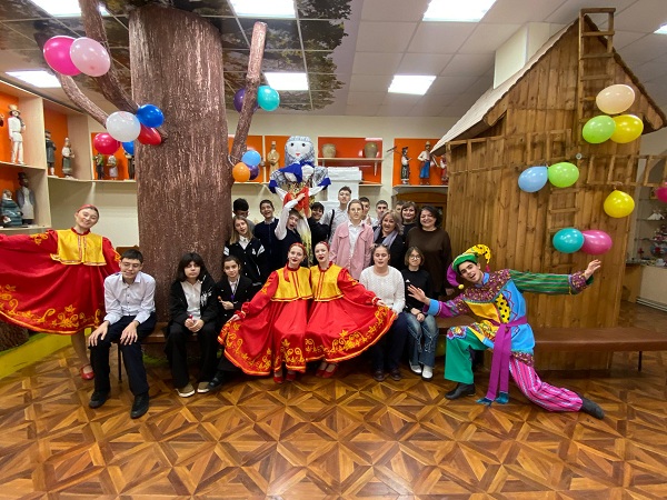 В этом году музейные мероприятия, посвященные Масленице, проходили с участием студентов-первокурсников – Менгазиевой Эмилии, Тимченко Софии, Командир Вероники, Какирцевой Николь, Ефимовой Марии, Паненко Дмитрия и Болотова Андрея.