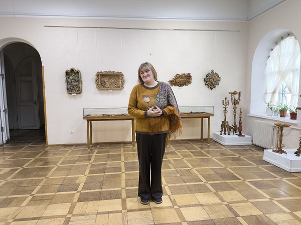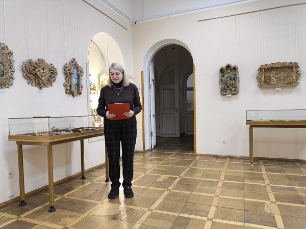 Ведущая мероприятия Евгения Баранова – заведующая отделом информации и культурно-просветительной работы поприветствовала всех гостей и рассказала собравшимся о творческом пути автора. Иван Иванович на протяжении уже более 30 лет занимается резьбой по дереву, является участником многочисленных выставок и творческих проектов.