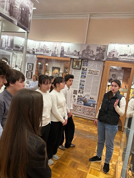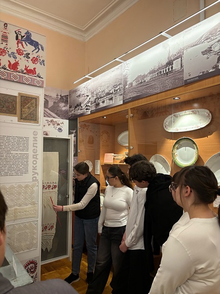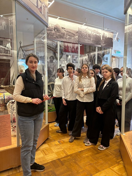 В рамках семинара младший научный сотрудник Махметова Анжелика провела учащимся экскурсию по выставке «Мозаика культур Крыма». Основной акцент был сделан в изменения в этнической карте полуострова, связанные с присоединением Крыма к России. А также учащиеся узнали о массовом переселении русского населения на полуостров, о традициях и обычаях, народных поверьях и праздниках русского народа.