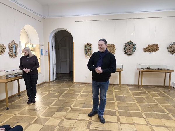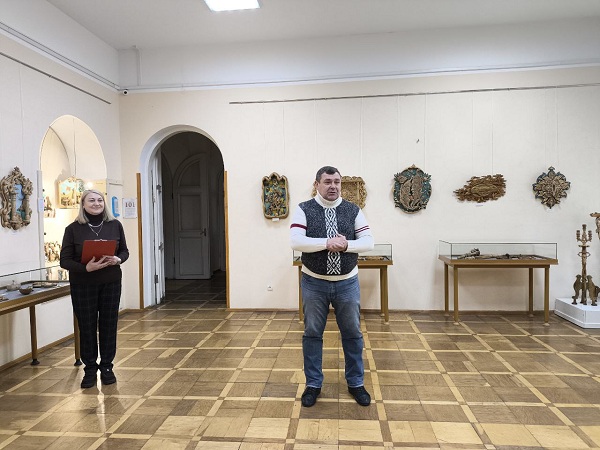 Ведущая мероприятия Евгения Баранова – заведующая отделом информации и культурно-просветительной работы поприветствовала всех гостей и рассказала собравшимся о творческом пути автора. Иван Иванович на протяжении уже более 30 лет занимается резьбой по дереву, является участником многочисленных выставок и творческих проектов.